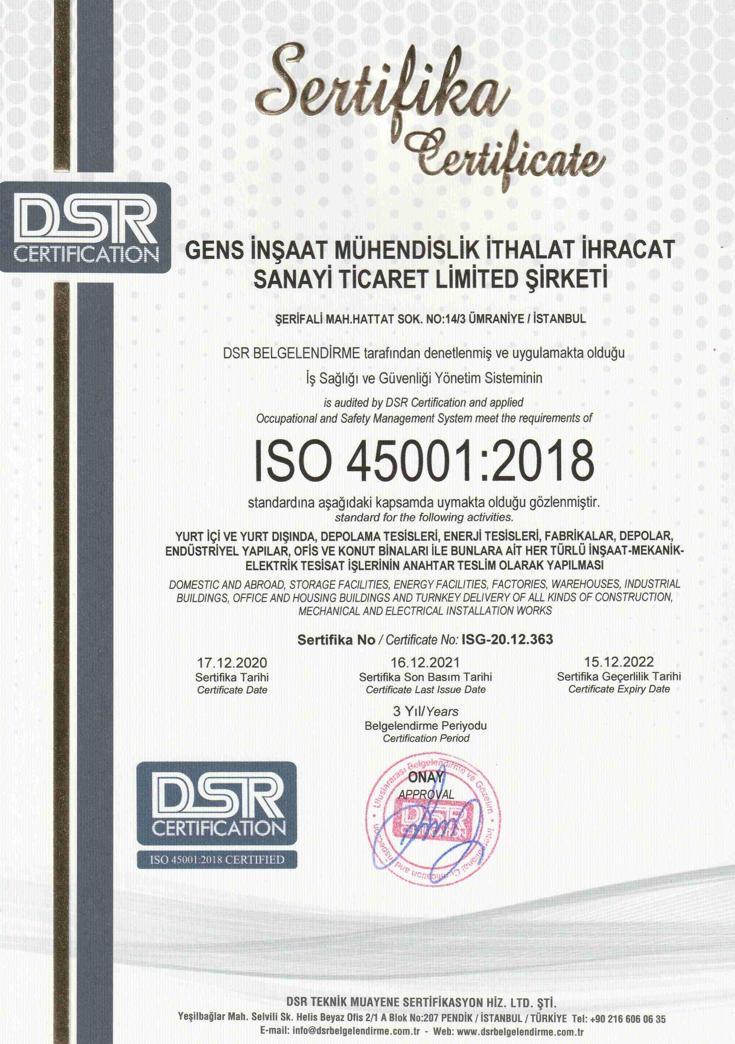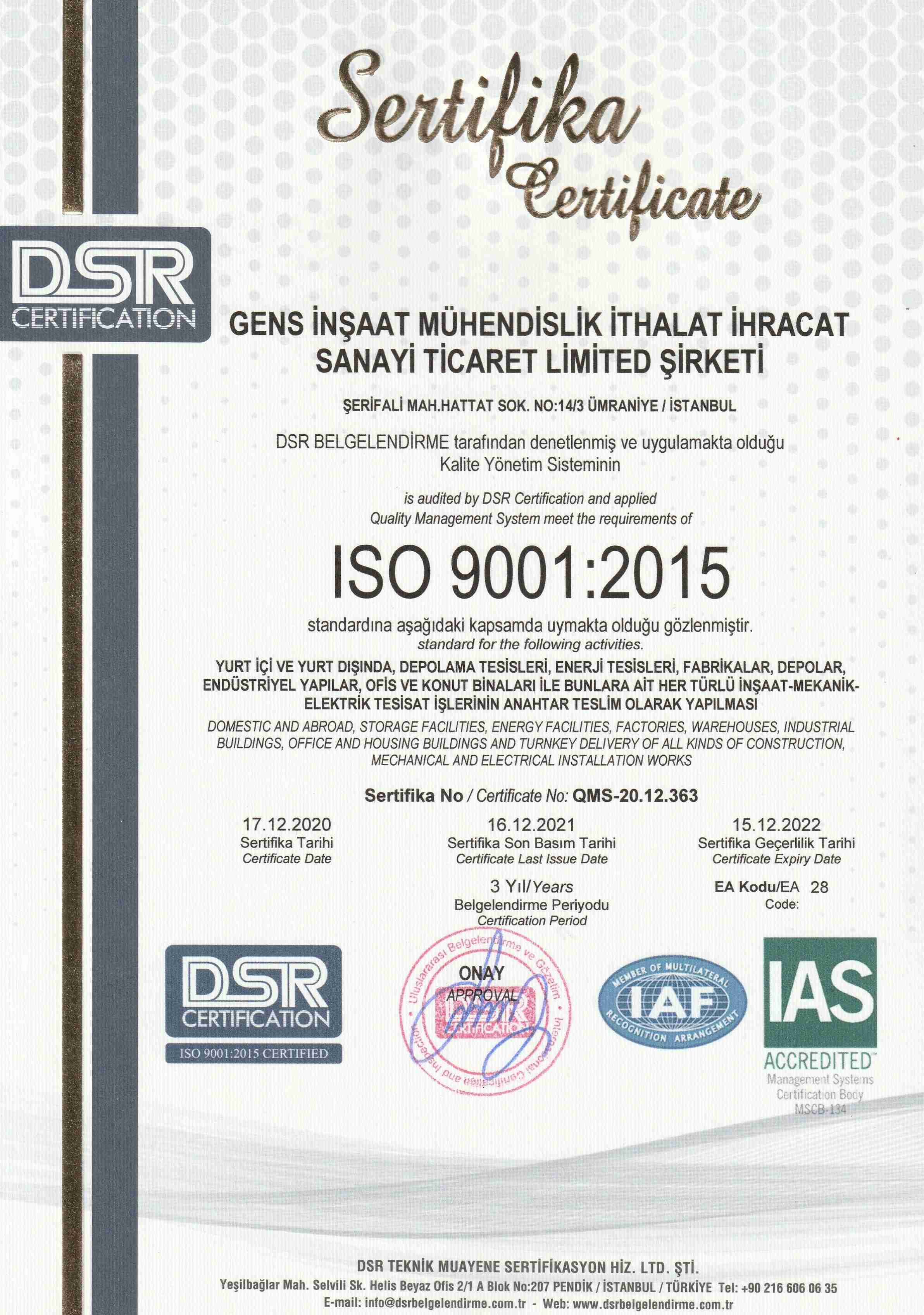 ISO sertifikalarımız: