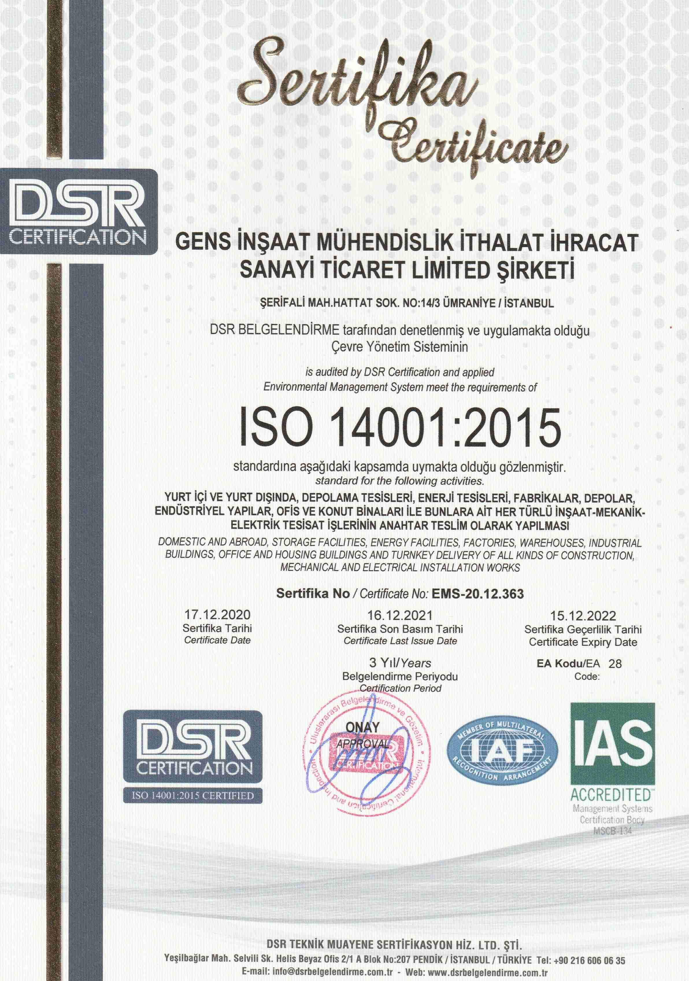 ISO sertifikalarımız: